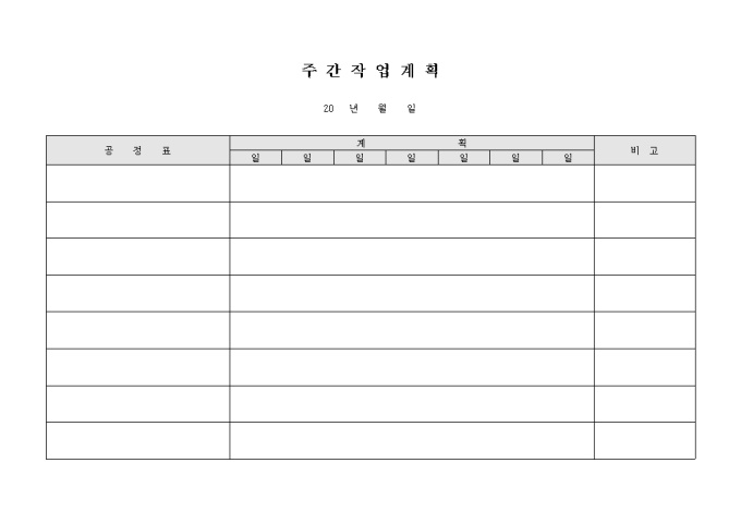 9,000원/월건축 관련 서식으로 공정에 관하여 7일간으로 분할하여 세부사항을 기입할 수 있도록 만든 주간 작업 계획 양식입니다.
