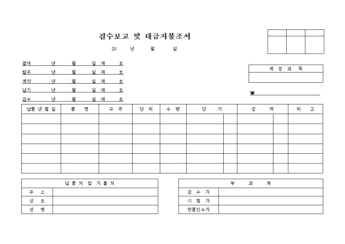 검수에 관련된 일괄적인 과정을 기록 관리 하실수 있는 기본 양식입니다.
