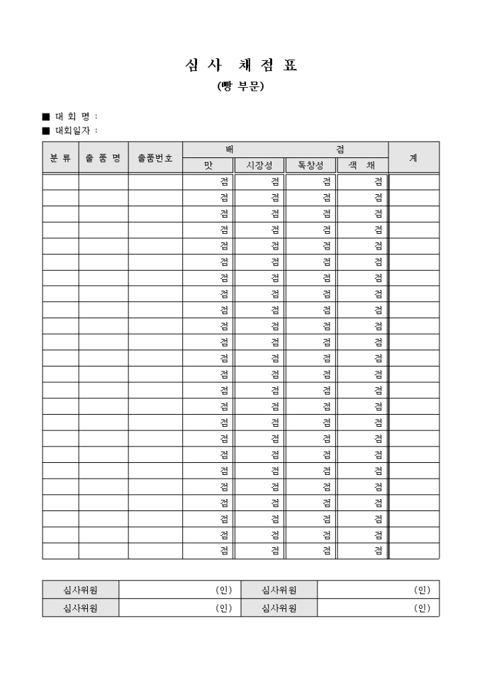 심사 채점표(빵 부문)