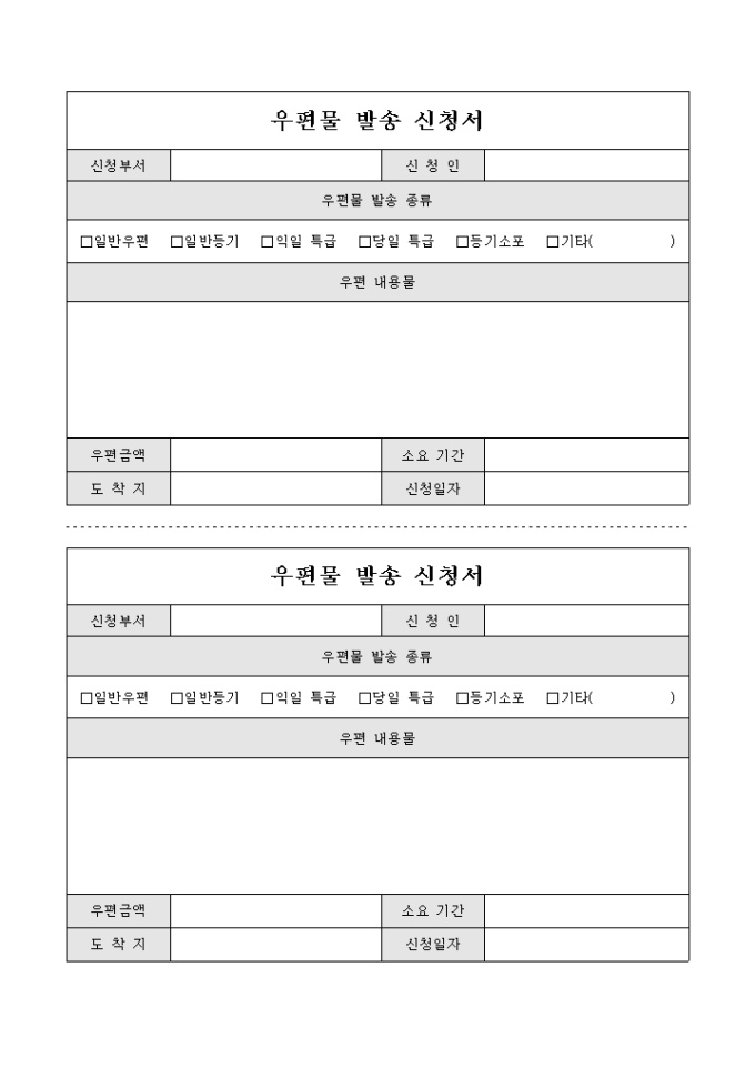 우편물 발송 신청서(2부)