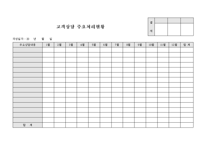 9,000원/월고객상담의 처리 내용을 월별로 기록한 주요처리 현황입니다.