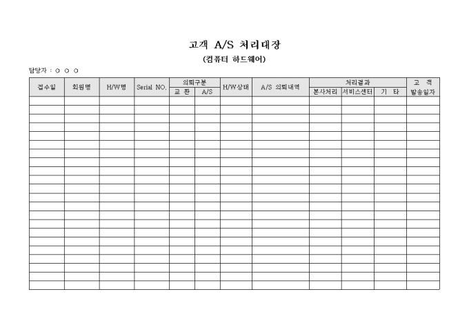 9,000원/월자사 회원의 컴퓨터 하드웨어의 A/S관리 내용을 기록한 A/S처리대장 입니다.
