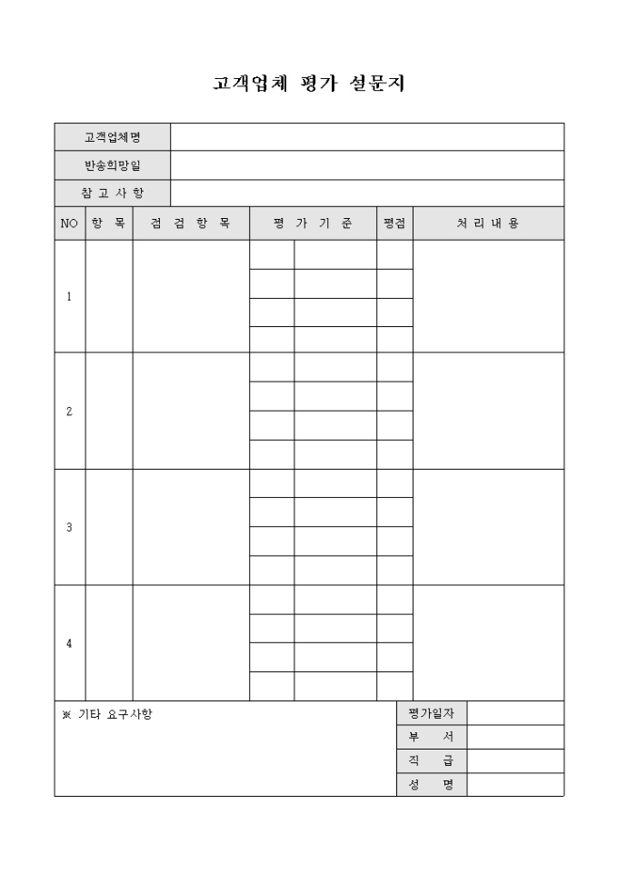 고객 업체 평가 설문지