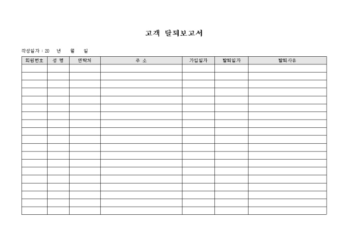 9,000원/월자사의 탈퇴 회원의 탈퇴일자와 탈퇴 사유를 기록하여 보고시 제출하는 보고문서 입니다.