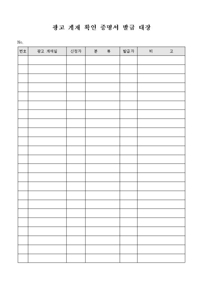 광고에 게재된 것을 증명하기 위한 학인 증명서의 발급기록을 남기기 위해 사용하는 발급대장 입니다.
