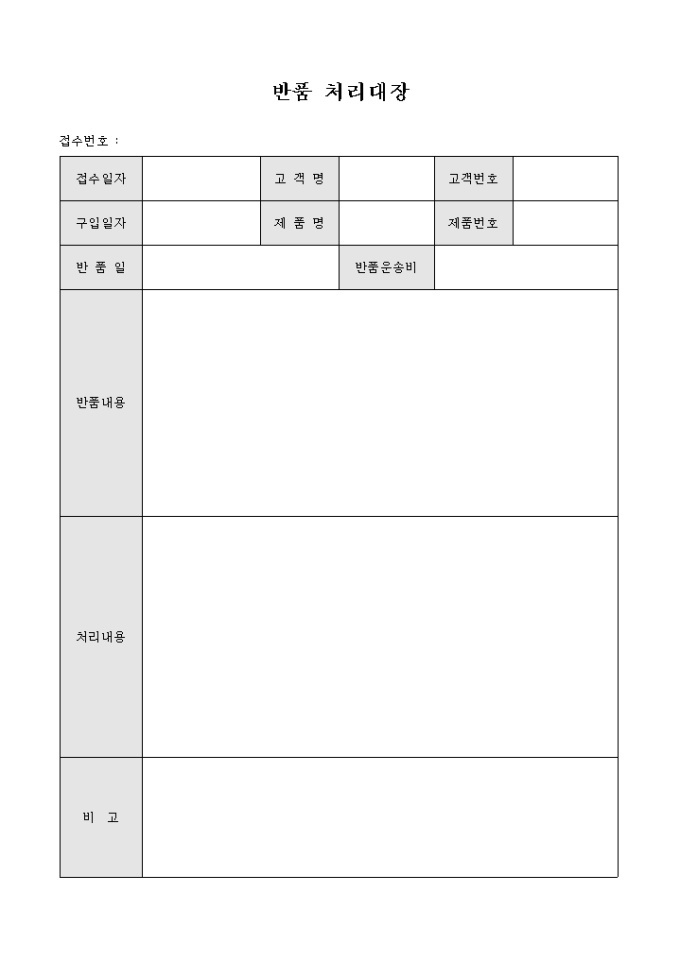 9,000원/월반품할 물품의 처리와 관련된 내용을 기록한 반품 처리대장 입니다.