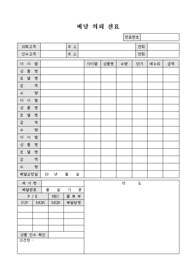 배달 의뢰 전표