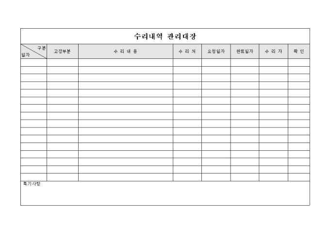 수리 내역 관리 대장