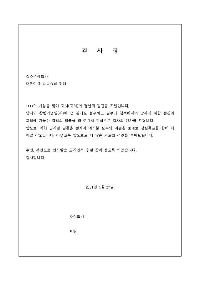 9,000원/월창립기념 감사장 예제 양식입니다. ㅇㅇ의 계절을 맞아 귀하의 평안과....