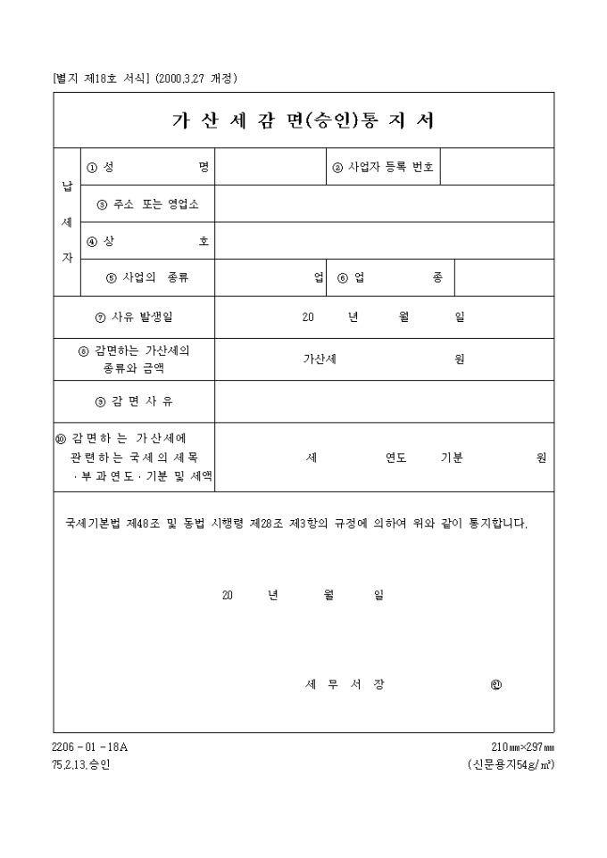 국세기본법 제48조 및 동법 시행령 제28조 제3항의 규정에 의하여 위와 같이 통지하실때 사용하는 양식입니다.
