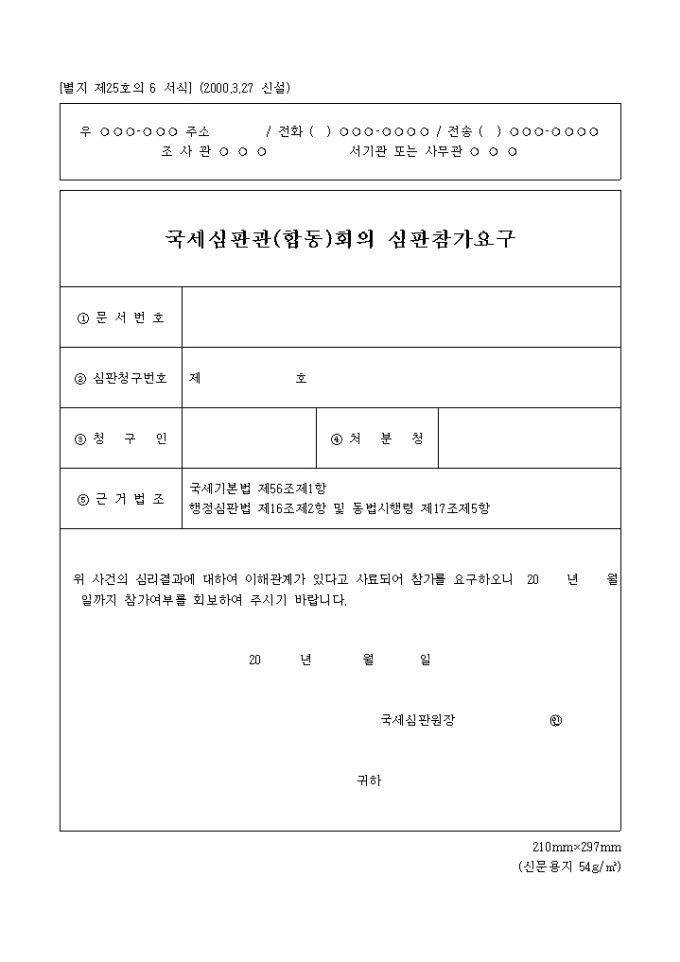 국제심판관,합동회의심판참가요구 양식입니다.