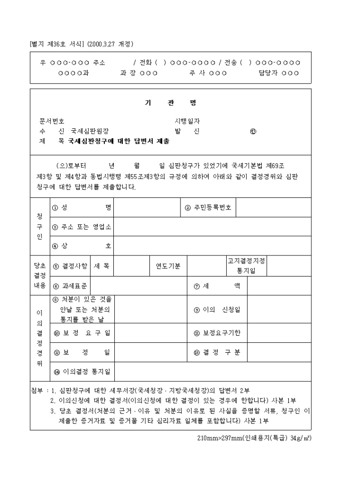 국제심판청구에대한답변서제출 양식입니다.