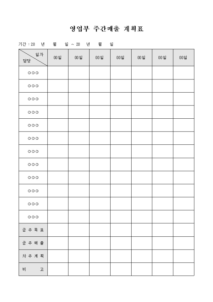 영업부 주간 매출 계획표
