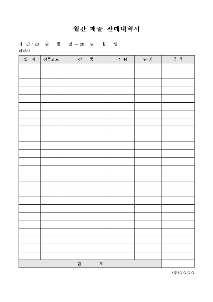 9,000원/월매출과 관련하여 월간 판매 내역을 정리하고자 할 때 사용할 수 있도록 만들어졌으며 상품에 따른 수량, 단가, 금액을 산출할 수 있게끔 제작된 서식입니다.