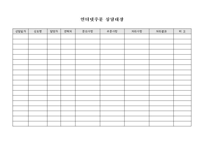 인터넷 주문 상담 대장