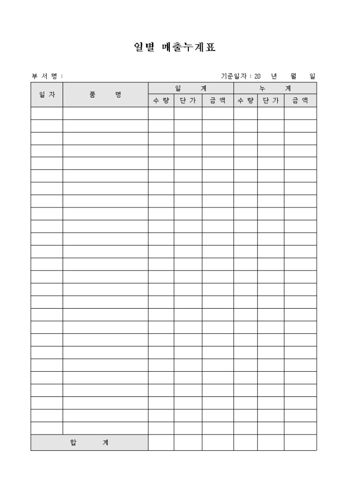 일별 매출 누계표