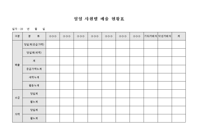 일일 사원별 매출 현황표