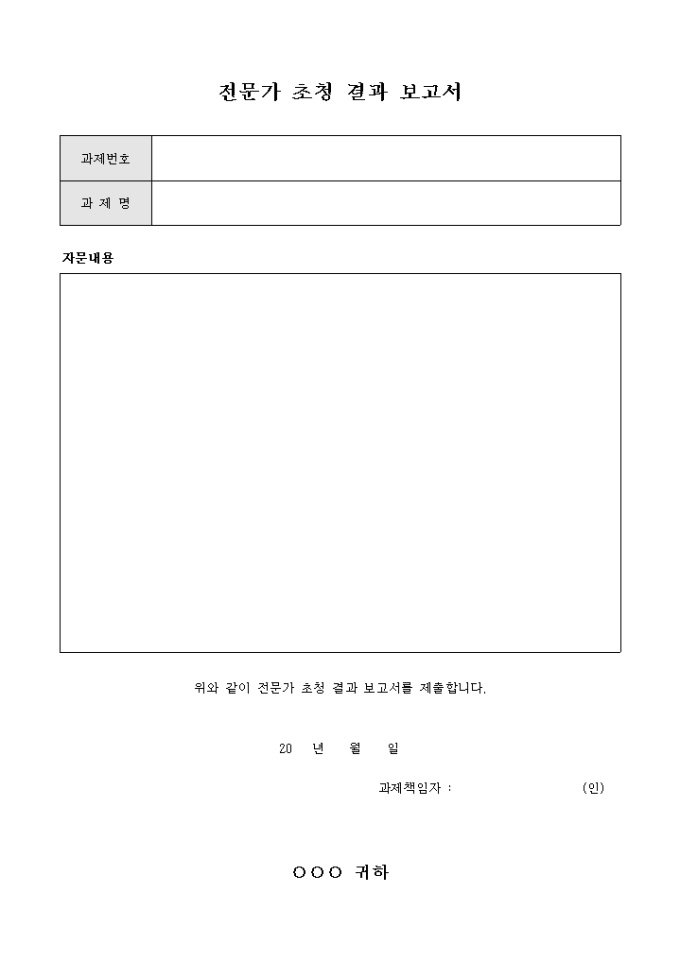 9,000원/월과제에 대한 전문가 초청 내용과 자문내용을 기록할 때 사용하는 전문가 초청 결과 보고서입니다.