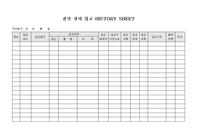 전산 장비 입고 HISTORY SHEET