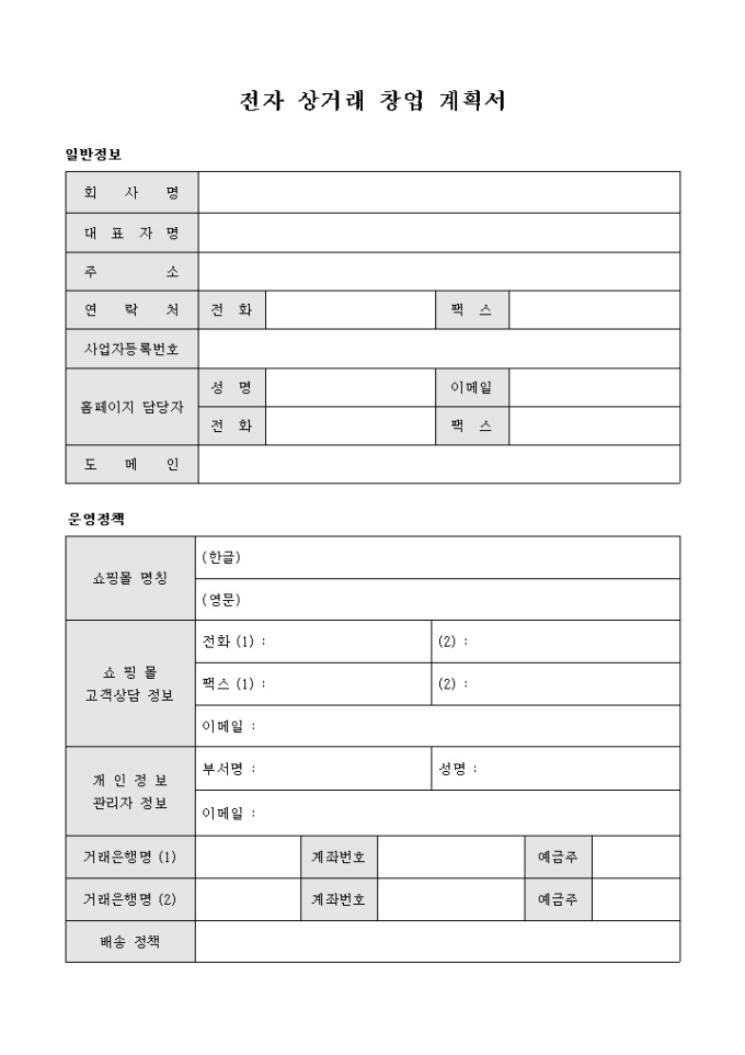 9,000원/월전자상거래 창업을 희망하고자 할 때 운영정책과 배송정책등 창업에 필요한 정보 등을 기록한 창업 계획서 입니다.