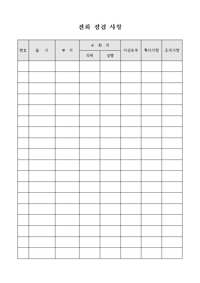 9,000원/월전화기의 수화내용과 이상유무등을 점검할 때 사용하는 점검 사항서 입니다. 전화 내용의 이상유무와 특이사항을 기입할 수 있습니다.