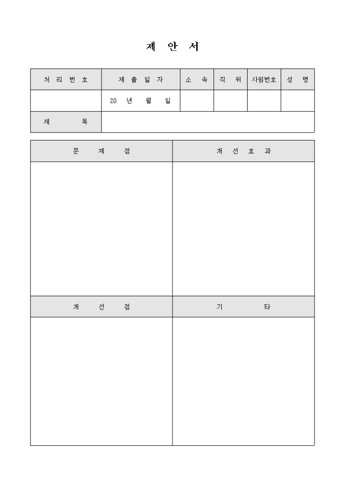 9,000원/월회사에서 사용하는 제안서 입니다. 문제점과 개선점 및 개선효과에 대한 사항을 기록할 수 있는 제안서 입니다.