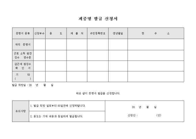 9,000원/월제증명 발급 신청시 사용합니다. 증명서의 종류 및 용도에 따른 신청 부수를 기록하여 신청할 수 있습니다.