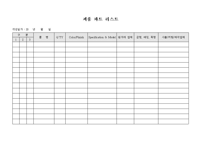 제품 파트 리스트