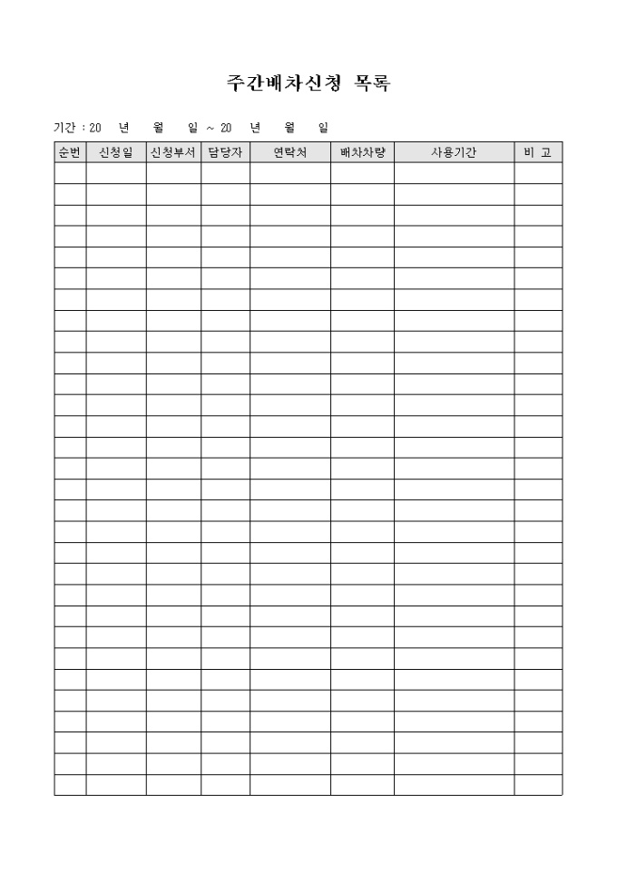9,000원/월주간 배차신청자의 소속 부서와 배차차량, 사용기간등의 기록이 가능한 주간 배차신청 목록 표입니다.