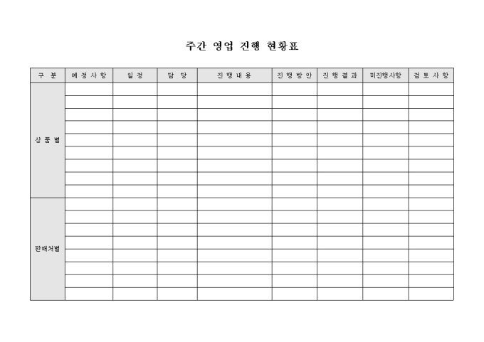 9,000원/월주간 영업 진행 현황표 입니다. 상품 및 판매처별 영업진행현황 확인이 가능합니다.