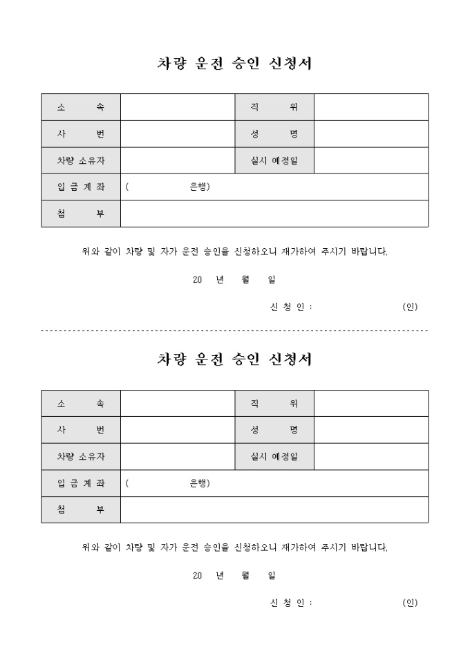 차량 운전 승인 신청서(2부)