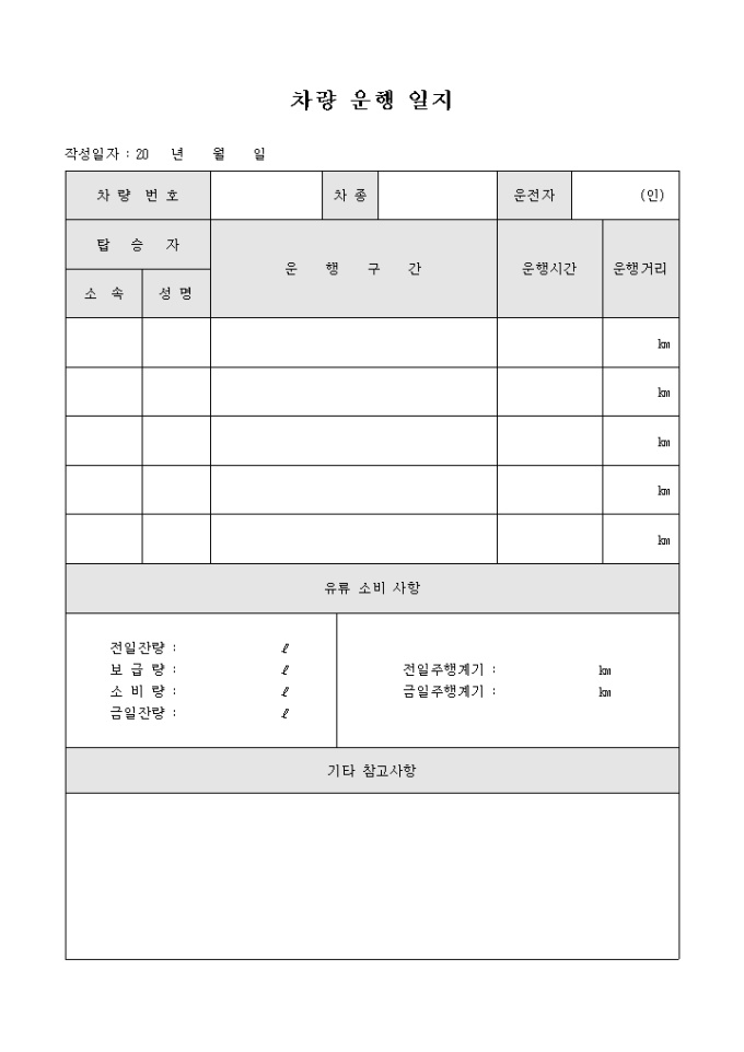 9,000원/월차량 운행에 대한 운행 시간별 거리를 기록한 차량 운행일지 입니다. 유류 소비에 대한 기록이 가능합니다.