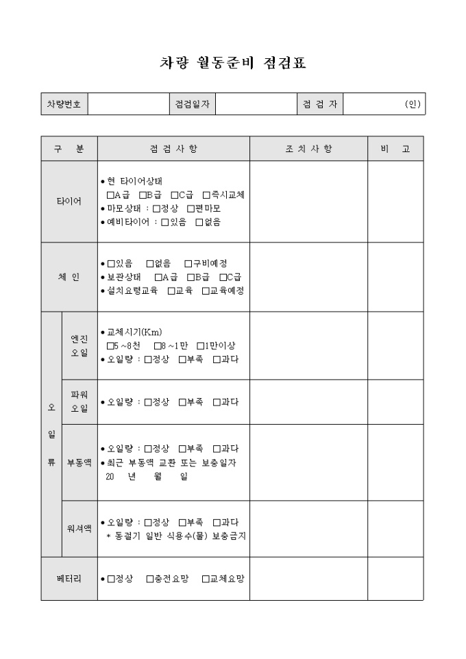 차량 월동 준비 점검표