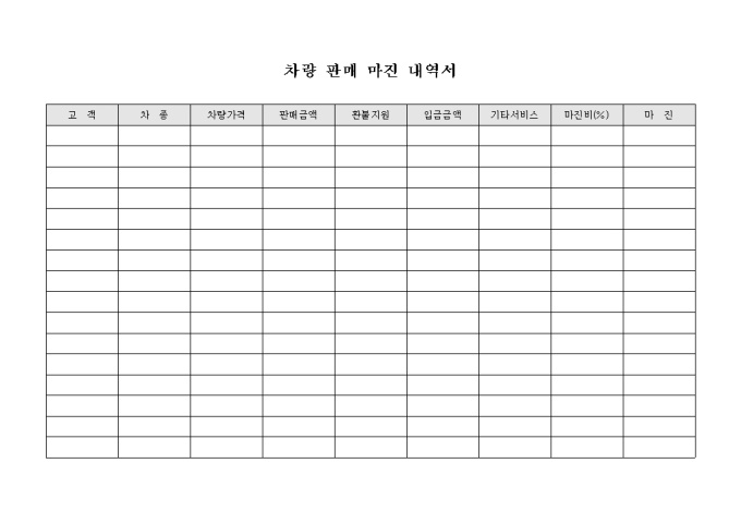 9,000원/월차량의 종류에 따른 판매마진을 확인할 수 있도록 구성된 차량 판매마진 내역서 입니다.