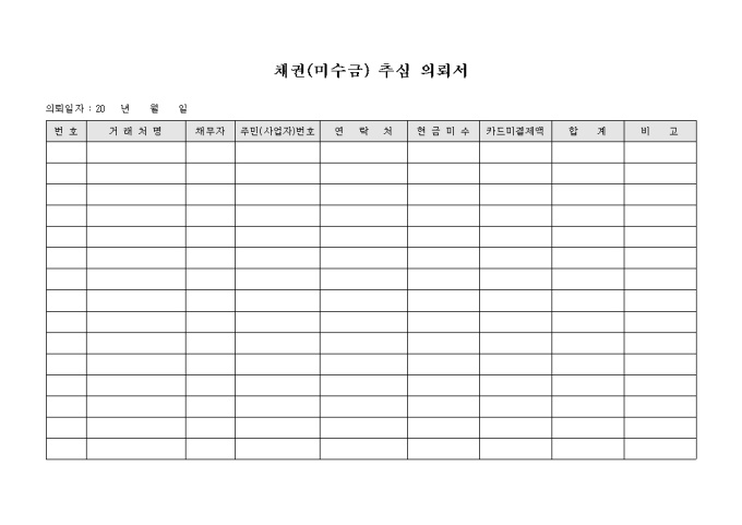 채권(미수금) 추심 의뢰서