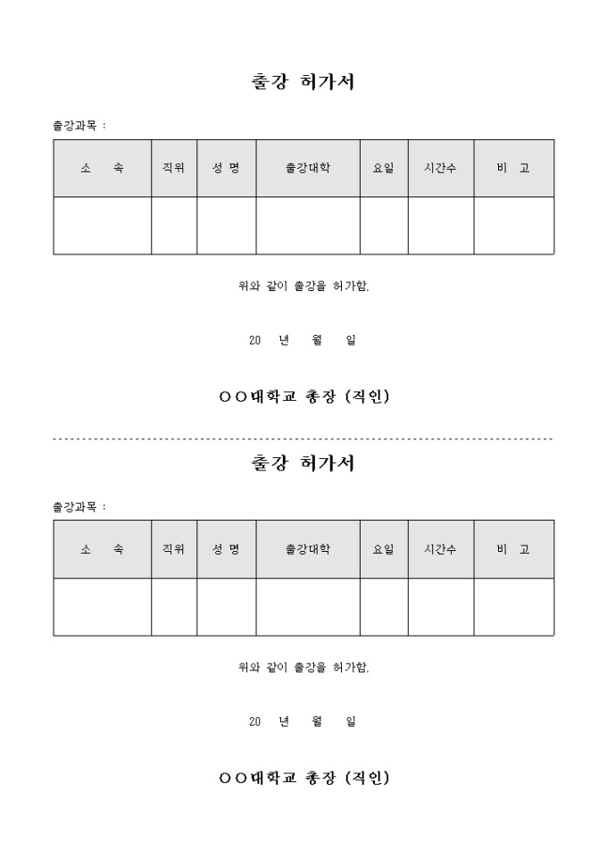 출강 허가서(대학교)