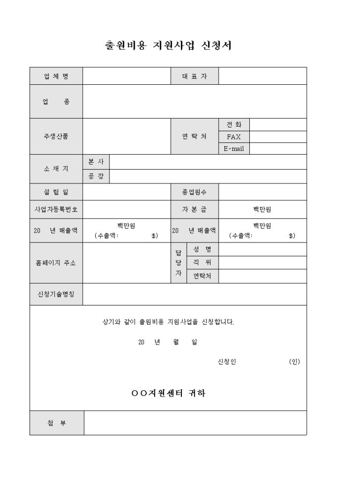 출원비용 지원사업 신청서