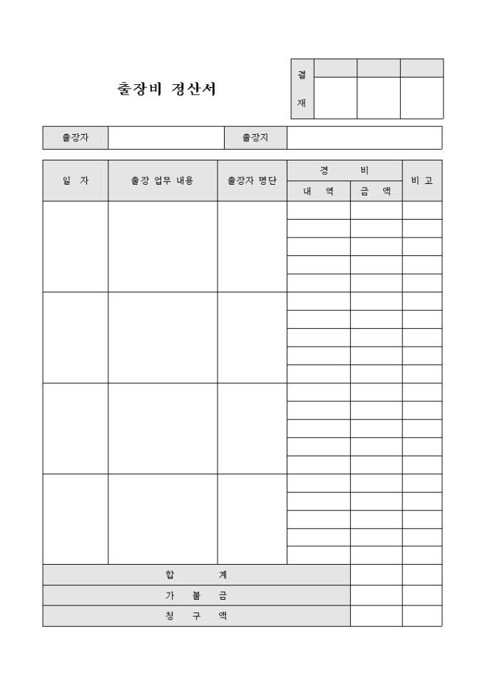 출장비 정산서(정기 결재)
