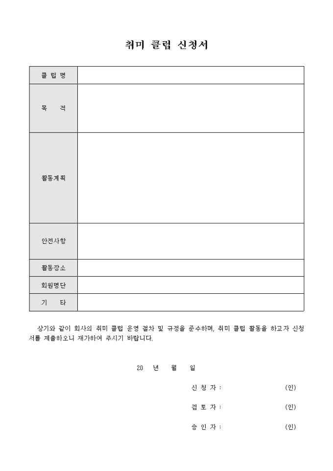 취미 클럽 신청서(회사)