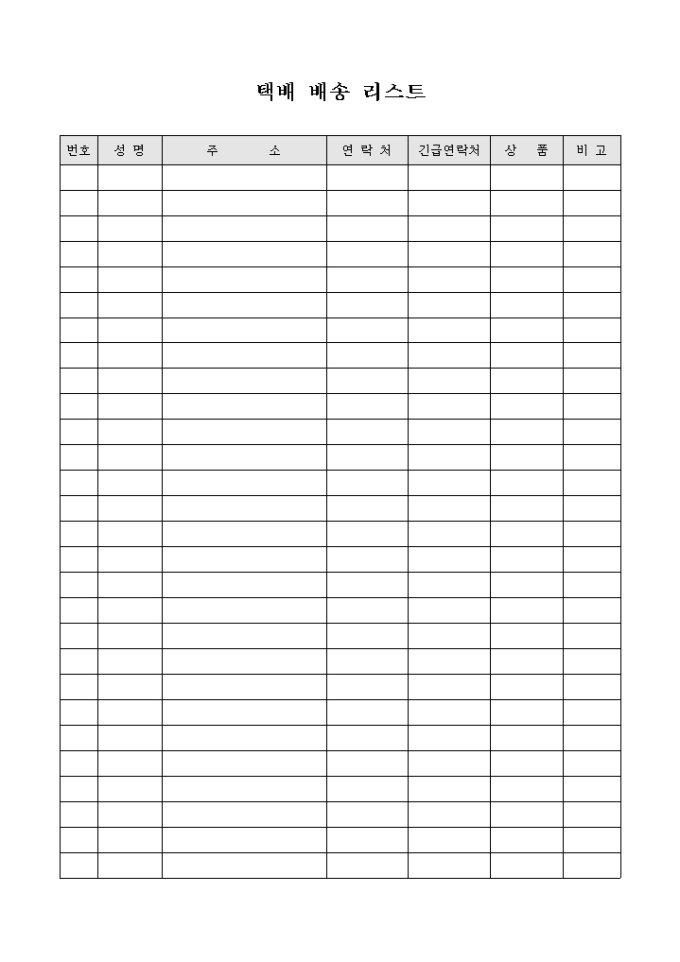 택배의 배송현황을 확인 할 수 있는 택배 배송 리스트입니다. 배송자의 주소와 수취인, 연락처를 확인 할 수 있습니다.