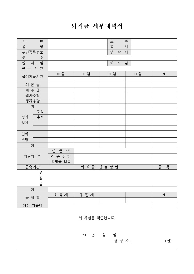 퇴직금 세부내역서