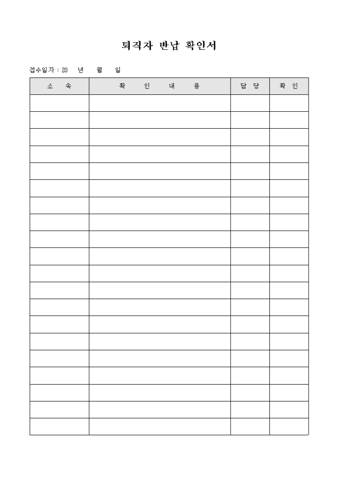 9,000원/월회사에서 사용하는 양식으로 퇴직자의 반납물품에 관한 확인내용을 기록한 퇴직자 반납 확인서 입니다.