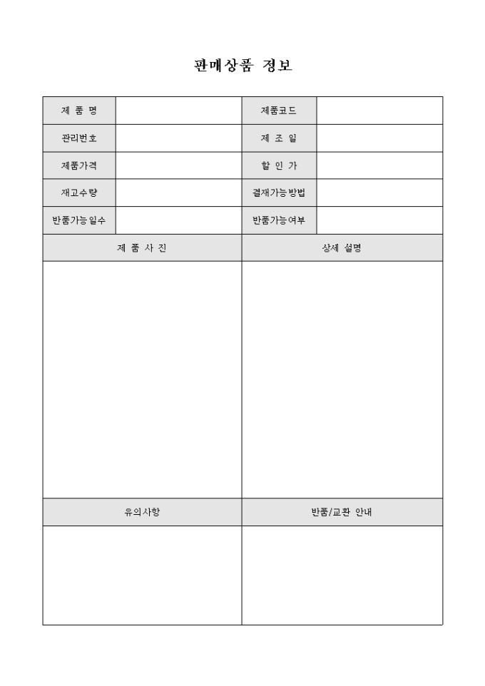 9,000원/월판매상품 정보입니다. 제품의 사진과 상세 설명을 기록 할 수 있도록 구성되어 있습니다.