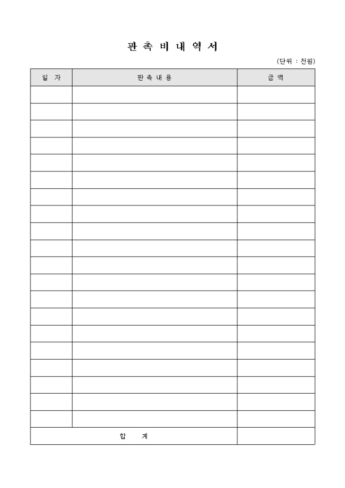 판촉비 내역서