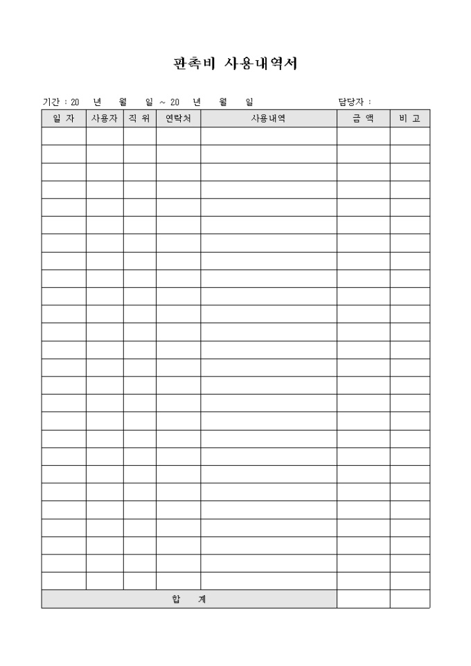 9,000원/월판촉비 사용에 대한 일자와 사용자, 사용내역, 금액을 기록한 판촉비 사용 내역서 입니다.