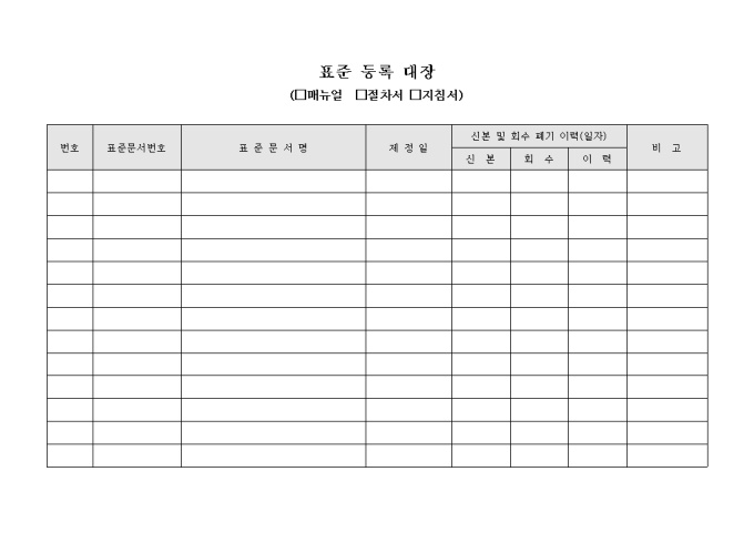 표준 등록 대장(매뉴얼 절차서 지침서)