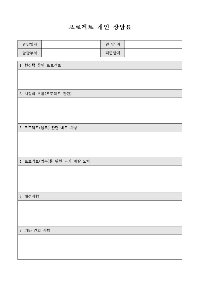 진행중인 프로젝트내용에 대한 의 개인 생각을 기록시 사용하는 상담표 입니다.