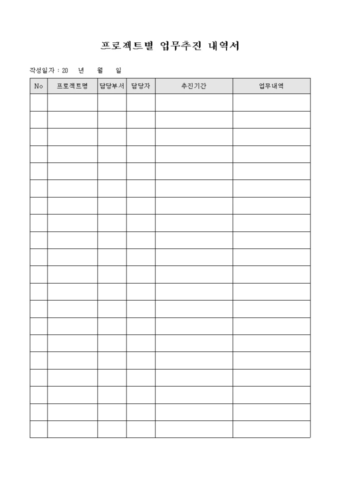 프로젝트별 업무 추진 내역서