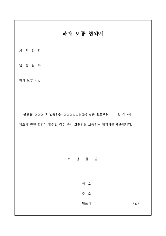 9,000원/월납품하는 물품의 결함 발생시 교환하겠다는 보증 협약서 입니다.