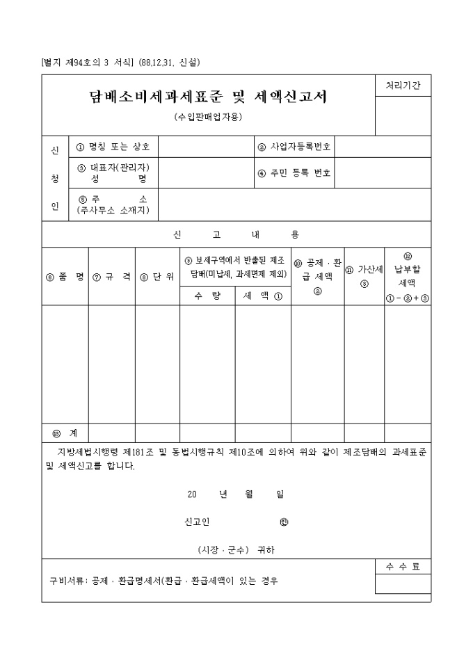 담배소비세과세표준 및 세액신고서